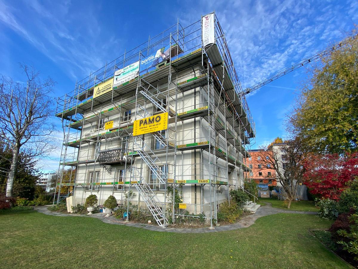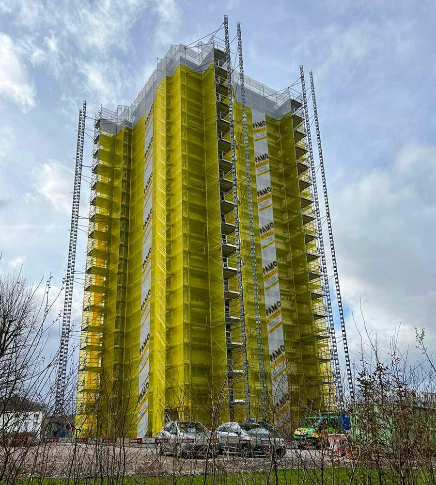 Vom Einfamilienhaus bis zum mehrstöckigen Hotel oder Industriekomplex: Mit einem PAMO-Fassadengerüst sind Sie auf der sicheren Seite. Überzeugen Sie sich von den vielfältigen Möglichkeiten und unserer über 50-jährigen Erfahrung.