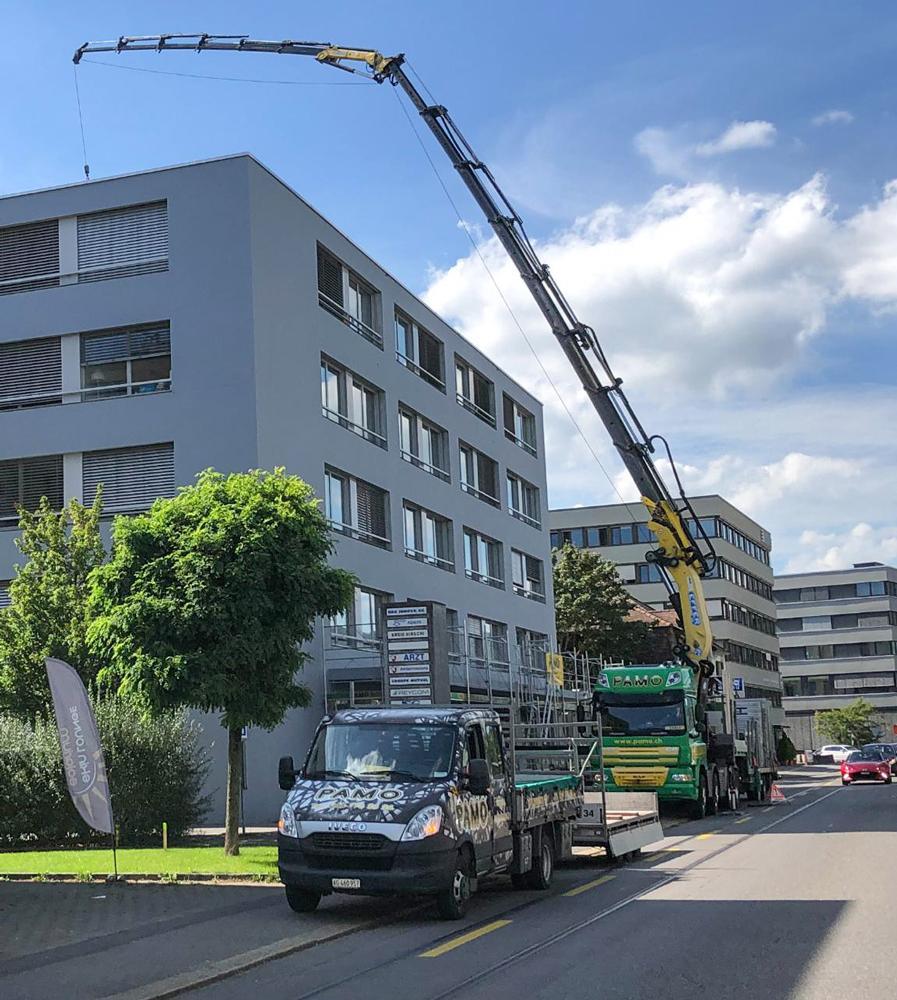 Dank unserem vielseitigen Fahrzeugpark sind wir in der Lage, sämtliche Projekte von klein bis gross umzusetzen.Auch wenn es einmal kompliziert werden sollte oder die Zugänglichkeit erschwert ist.